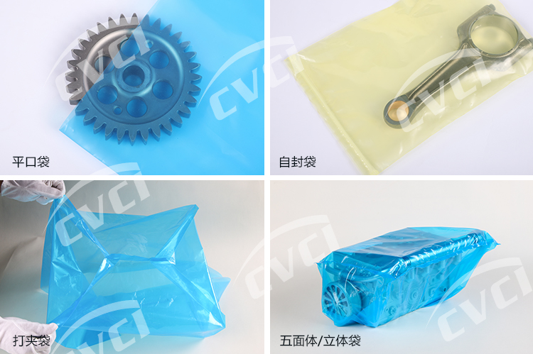 氣相防銹塑料薄膜以聚烯烴類樹脂為基材,加入揮發(fā)性緩蝕劑(VCI),經(jīng)過一些列工藝制成。氣相防銹膜在實際應用中主要以袋狀或片狀形式呈現(xiàn)(詳見產品狀態(tài)),包裝保護客戶的產品,集防銹與包裝功能為一體。我們膜的厚度、顏色、尺寸及形式根據(jù)客戶實際需求進行定制化、個性化生產。